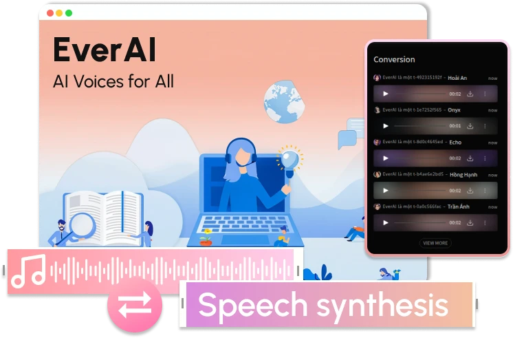 Bạn không cần thiết bị đặc biệt! EverAI hoạt động trực tuyến trên mọi trình duyệt, từ máy tính đến điện thoại. Chỉ cần kết nối internet là bạn đã sẵn sàng để tạo ra một bản sao giọng nói của chính mình.